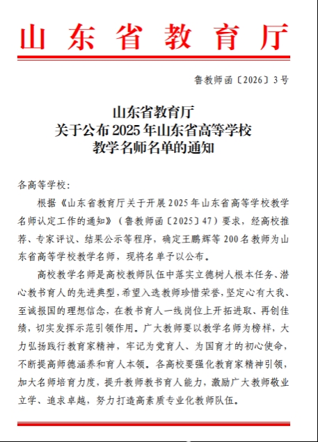 近日,山东医学高等专科学校护理系惠亚娟教授获评2025年山东省高等学校教学名师。